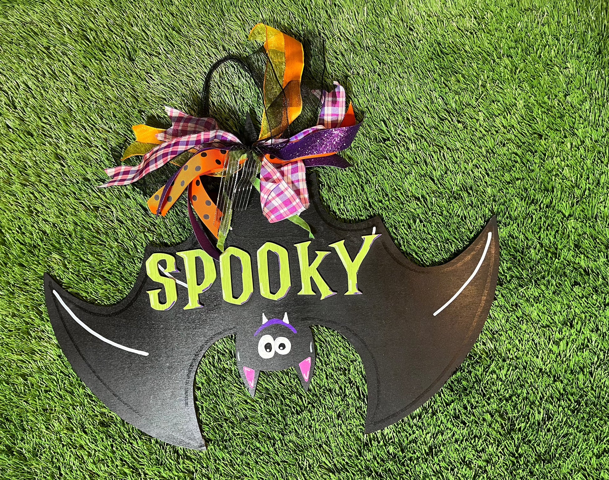 Welcome your trick-or-treaters with this adorable spooky door hanger! Featuring a bright-eyed bat, it's sure to add some Halloween magic to your front door. Don't be left in the dark this season — hang your bat-ty friend and get ready for a spooktacular night!