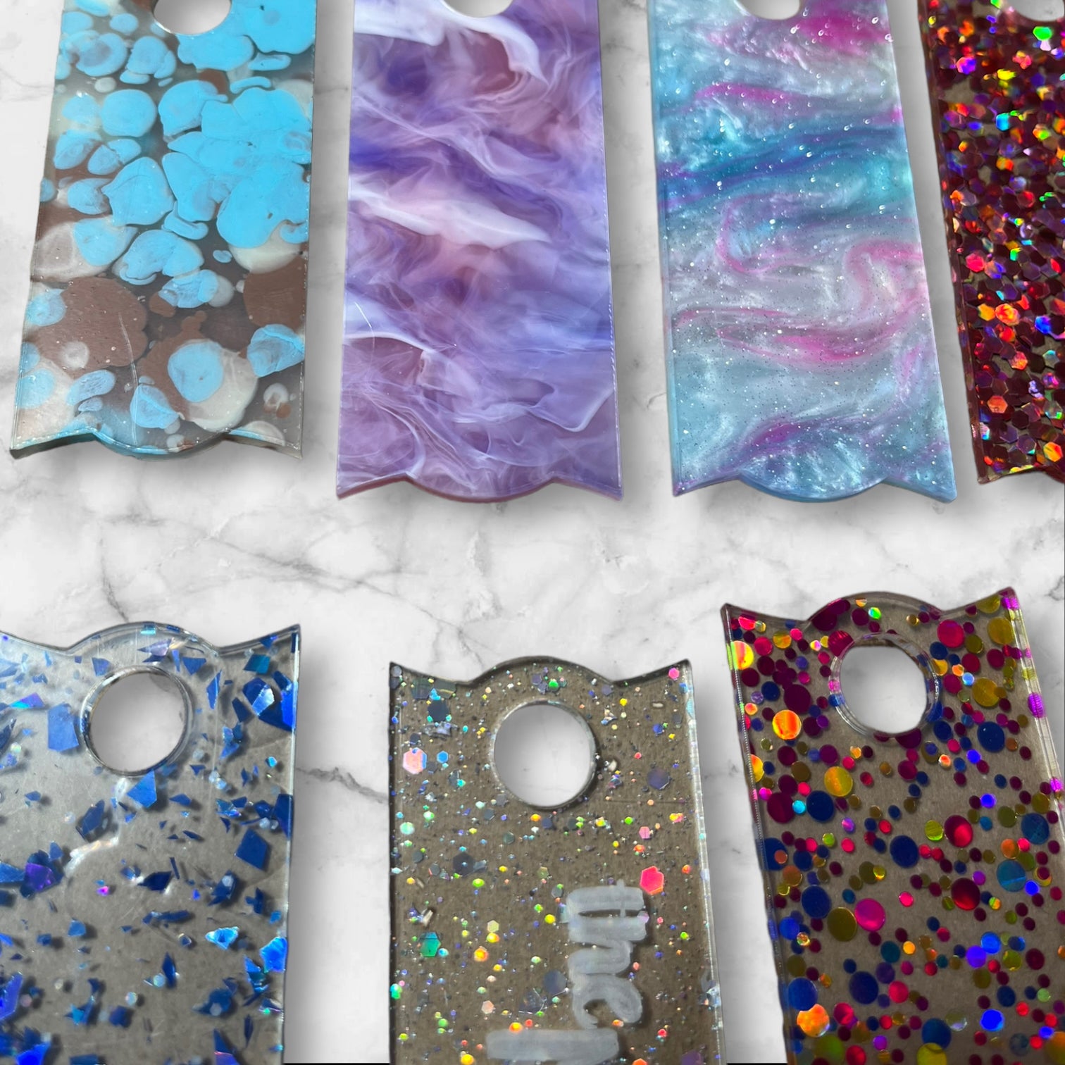 Get ready to add some sparkle to your tumbler game with our NEW Spring 2024 Flare Tumbler Tags! These tags come in glittery, engraved or double layered acrylic options, allowing you to personalize your tumbler in a unique way. Don't miss out on the chance to give your favorite cup some extra flair!